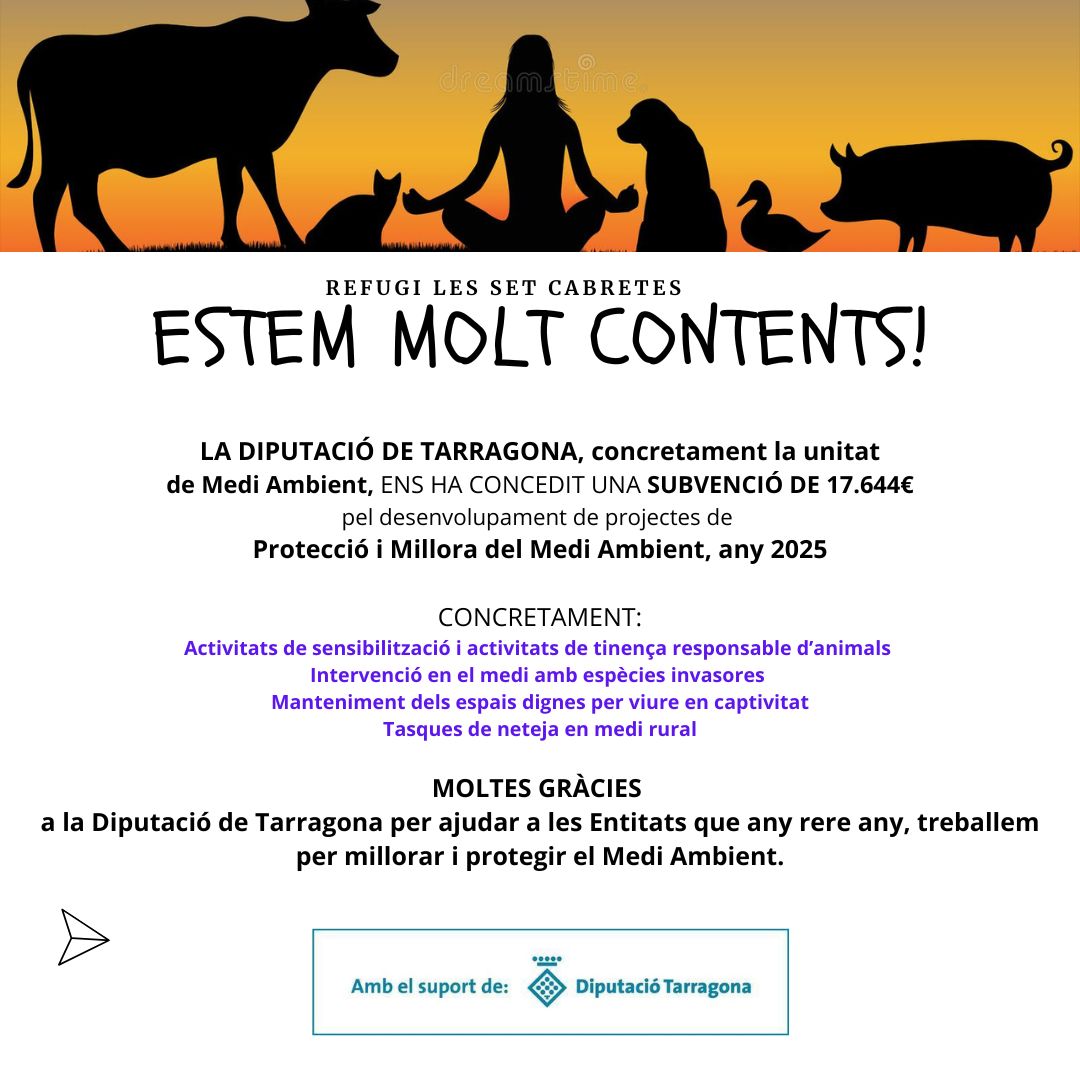 LA DIPUTACIÓ DE TARRAGONA, concretament la unitat de Medi Ambient, ENS HA CONCEDIT UNA SUBVENCIÓ DE 17.644€ pel desenvolupament de projectes de